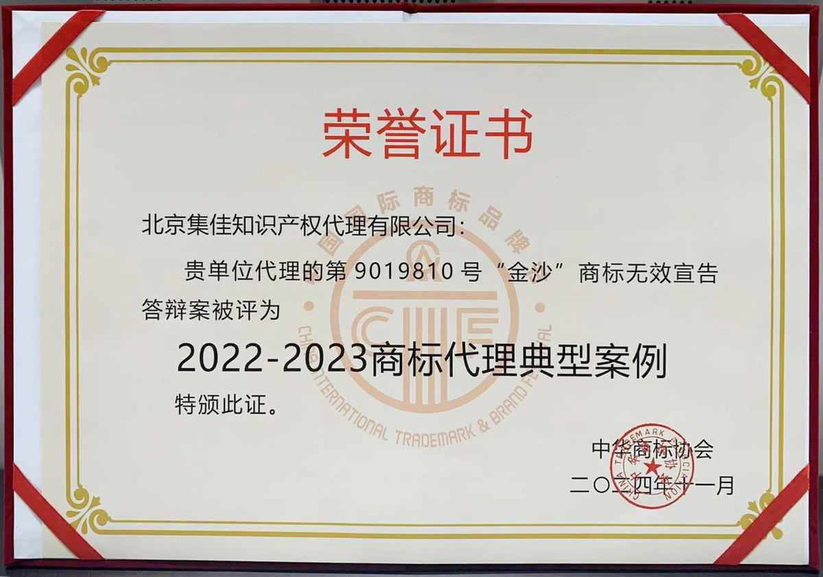 >c7娱乐>关于我们>荣誉概览>2024>集佳代理的“金沙”商标权无效宣告答辩案入选“2022-2023商标代理典型案例”