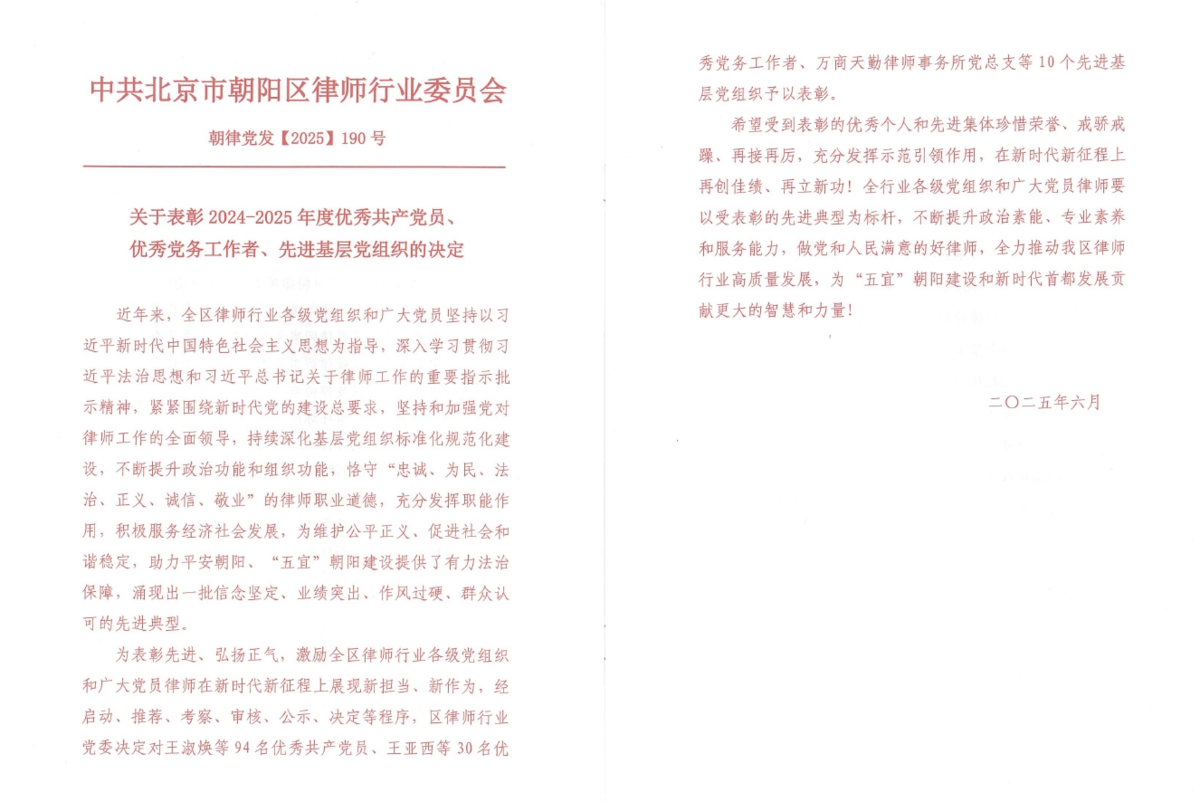 >c7娱乐>关于我们>荣誉概览>2025>中共c7娱乐联合支部委员会获评北京市“先进律师事务所党组织”光荣称号 多位优秀党员获得表彰